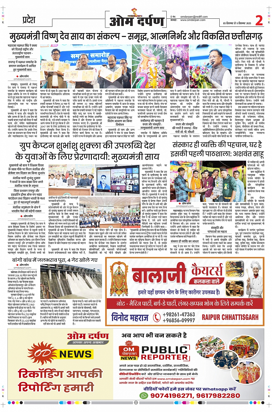 इस हफ़्ते के ओम दर्पण साप्ताहिक संस्करण में पढ़िए - रायपुर में स्मार्ट सिटी प्रोजेक्ट की नई प्रगति पर विशेष रिपोर्ट, राजधानी के मौसम का हाल और किसानों के लिए ज़रूरी सलाह, और इस सप्ताह की राजनीतिक और मनोरंजन की दुनिया की सभी बड़ी खबरें...