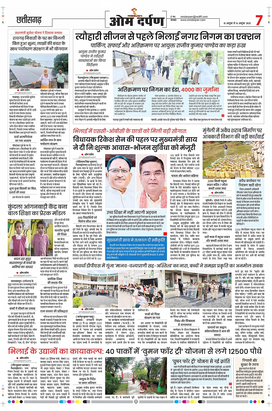 इस हफ़्ते के ओम दर्पण साप्ताहिक संस्करण में पढ़िए - रायपुर में स्मार्ट सिटी प्रोजेक्ट की नई प्रगति पर विशेष रिपोर्ट, राजधानी के मौसम का हाल और किसानों के लिए ज़रूरी सलाह, और इस सप्ताह की राजनीतिक और मनोरंजन की दुनिया की सभी बड़ी खबरें...