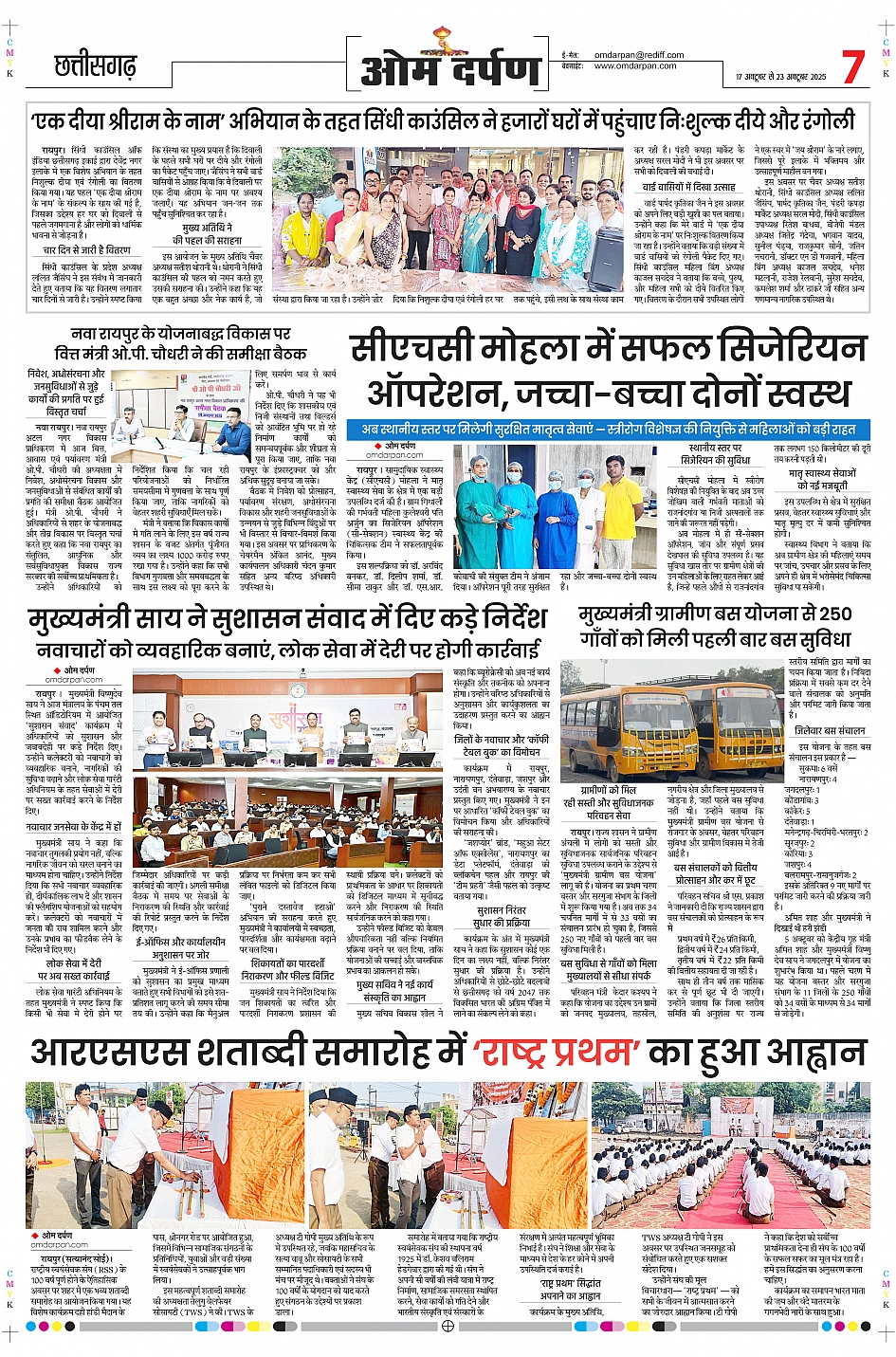 इस हफ़्ते के ओम दर्पण साप्ताहिक संस्करण में पढ़िए - रायपुर में स्मार्ट सिटी प्रोजेक्ट की नई प्रगति पर विशेष रिपोर्ट, राजधानी के मौसम का हाल और किसानों के लिए ज़रूरी सलाह, और इस सप्ताह की राजनीतिक और मनोरंजन की दुनिया की सभी बड़ी खबरें...