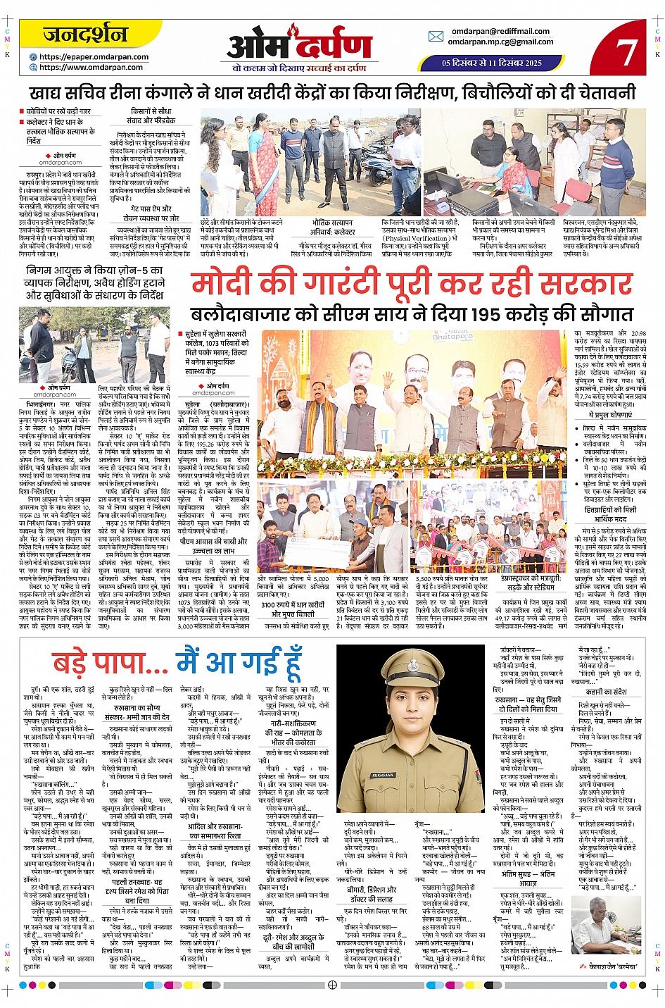 ओम दर्पण ई-पेपर – छत्तीसगढ़ का विश्वसनीय साप्ताहिक समाचारपत्र। आज का ताज़ा epaper ऑनलाइन पढ़ें। राजनीति, जिलेवार खबरें, रोजगार, शिक्षा, खेल और विशेष रिपोर्टों की PDF सप्ताह अपडेट।