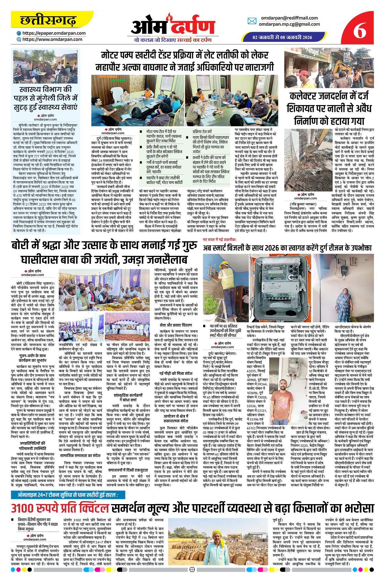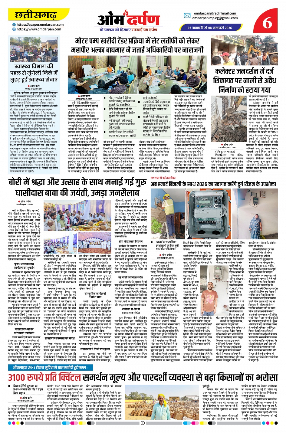 ओम दर्पण ई-पेपर – छत्तीसगढ़ का विश्वसनीय साप्ताहिक समाचारपत्र। आज का ताज़ा epaper ऑनलाइन पढ़ें। राजनीति, जिलेवार खबरें, रोजगार, शिक्षा, खेल और विशेष रिपोर्टों की PDF सप्ताह अपडेट।