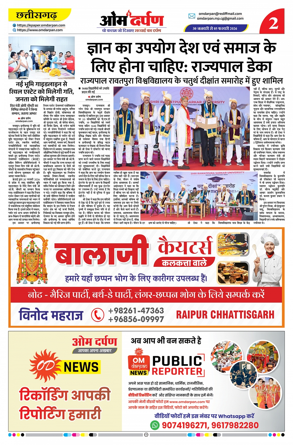 ओम दर्पण ई-पेपर – छत्तीसगढ़ का विश्वसनीय साप्ताहिक समाचारपत्र। आज का ताज़ा epaper ऑनलाइन पढ़ें। राजनीति, जिलेवार खबरें, रोजगार, शिक्षा, खेल और विशेष रिपोर्टों की PDF सप्ताह अपडेट।