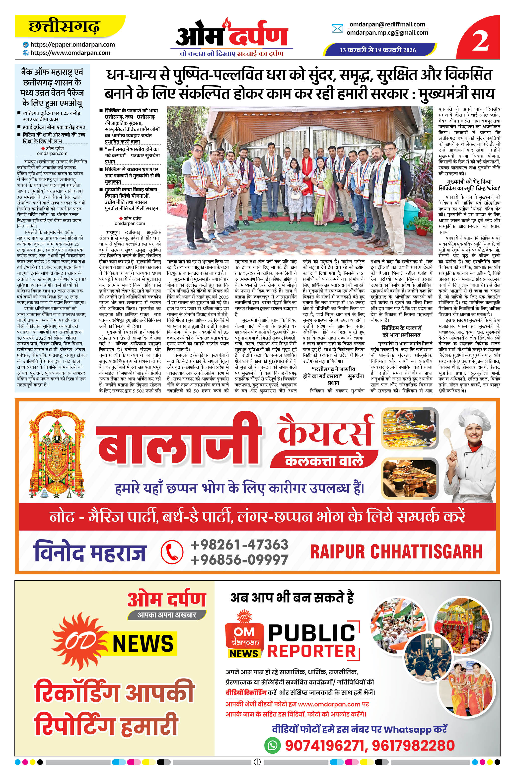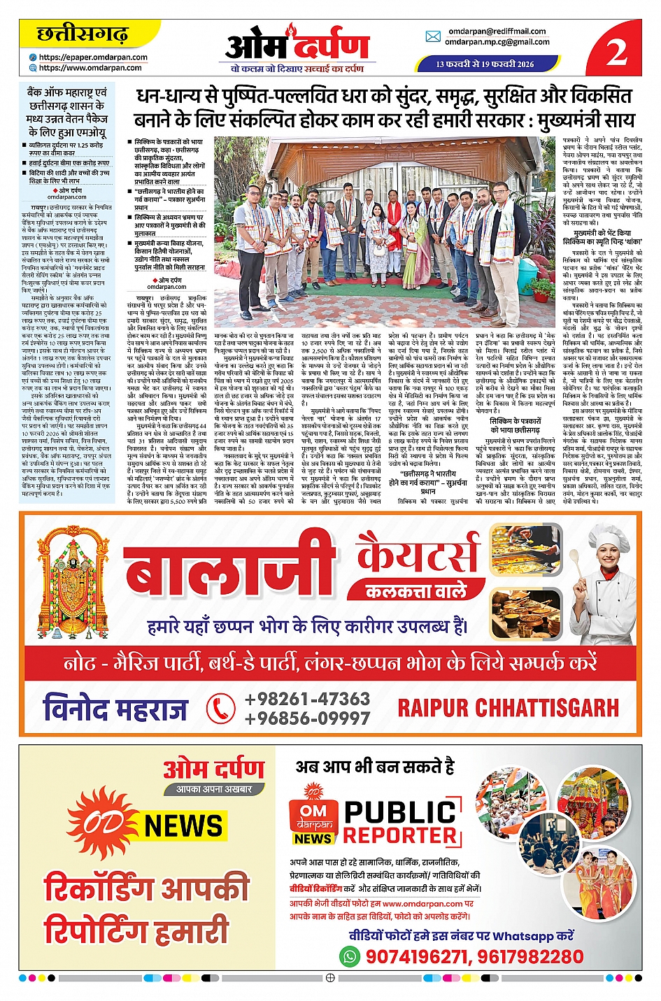 ओम दर्पण ई-पेपर – छत्तीसगढ़ का विश्वसनीय साप्ताहिक समाचारपत्र। आज का ताज़ा epaper ऑनलाइन पढ़ें। राजनीति, जिलेवार खबरें, रोजगार, शिक्षा, खेल और विशेष रिपोर्टों की PDF सप्ताह अपडेट।